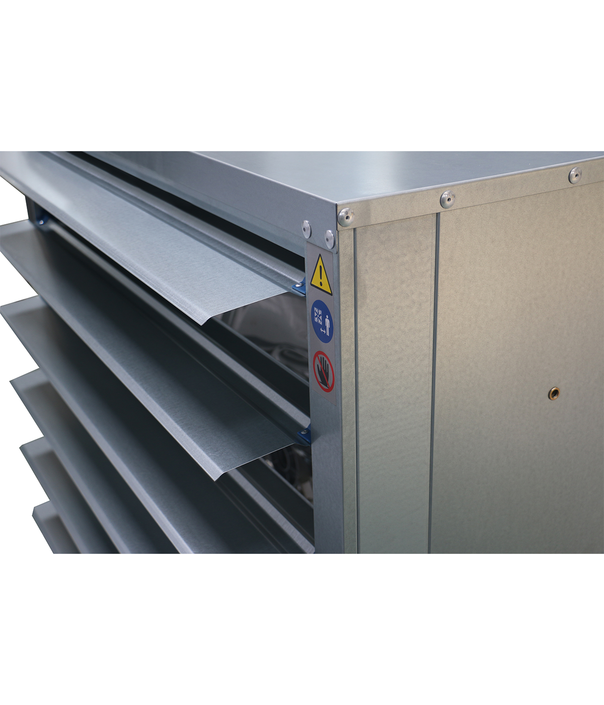 EF-80, zorlu koşullara dayanacak şekilde 275g kalınlığında korozyona dayanıklı galvanizli sac kasadan imal edilmiştir. Pervaneleri, optimum hava akışı ve uzun ömür için 1.2mm kalınlığında 430 Paslanmaz Çelikten üretilmiştir. Güvenilir Japon Kayış tahrik sistemi ve galvanizli güvenlik ağı sayesinde uzun süreli, güvenli ve istikrarlı bir performans vaat eder. Ağırlıklı itmeli panjur sistemi, rüzgar ve hava sızıntısını önleyerek enerji tasarrufuna katkıda bulunur.